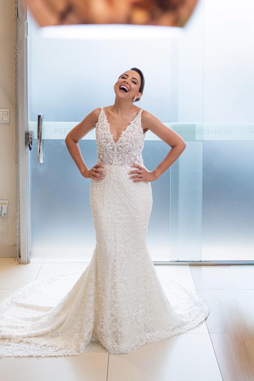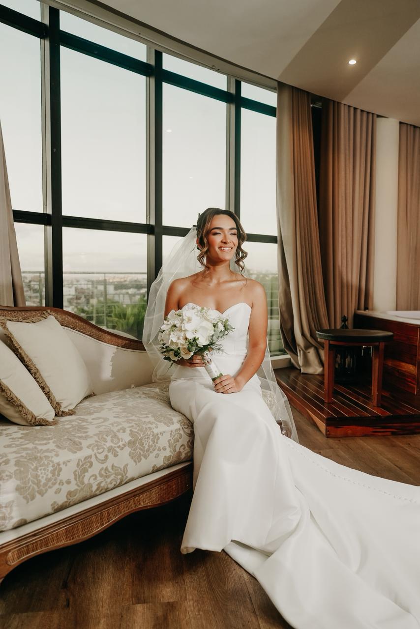 Um mês antes do casamento, realizamos um alinhamento detalhado sobre seu estilo, referências, vestido, personalidade e proposta do evento.