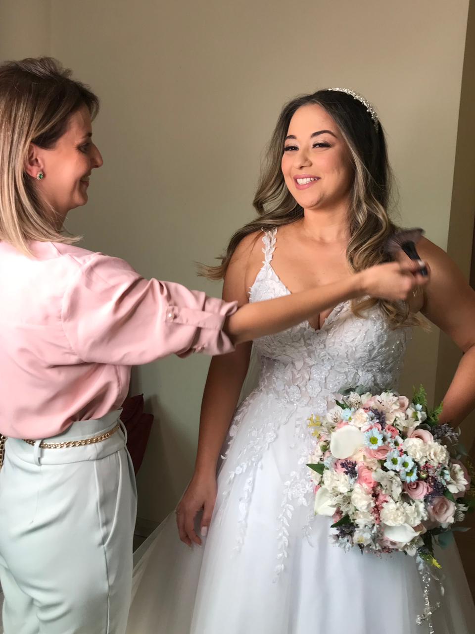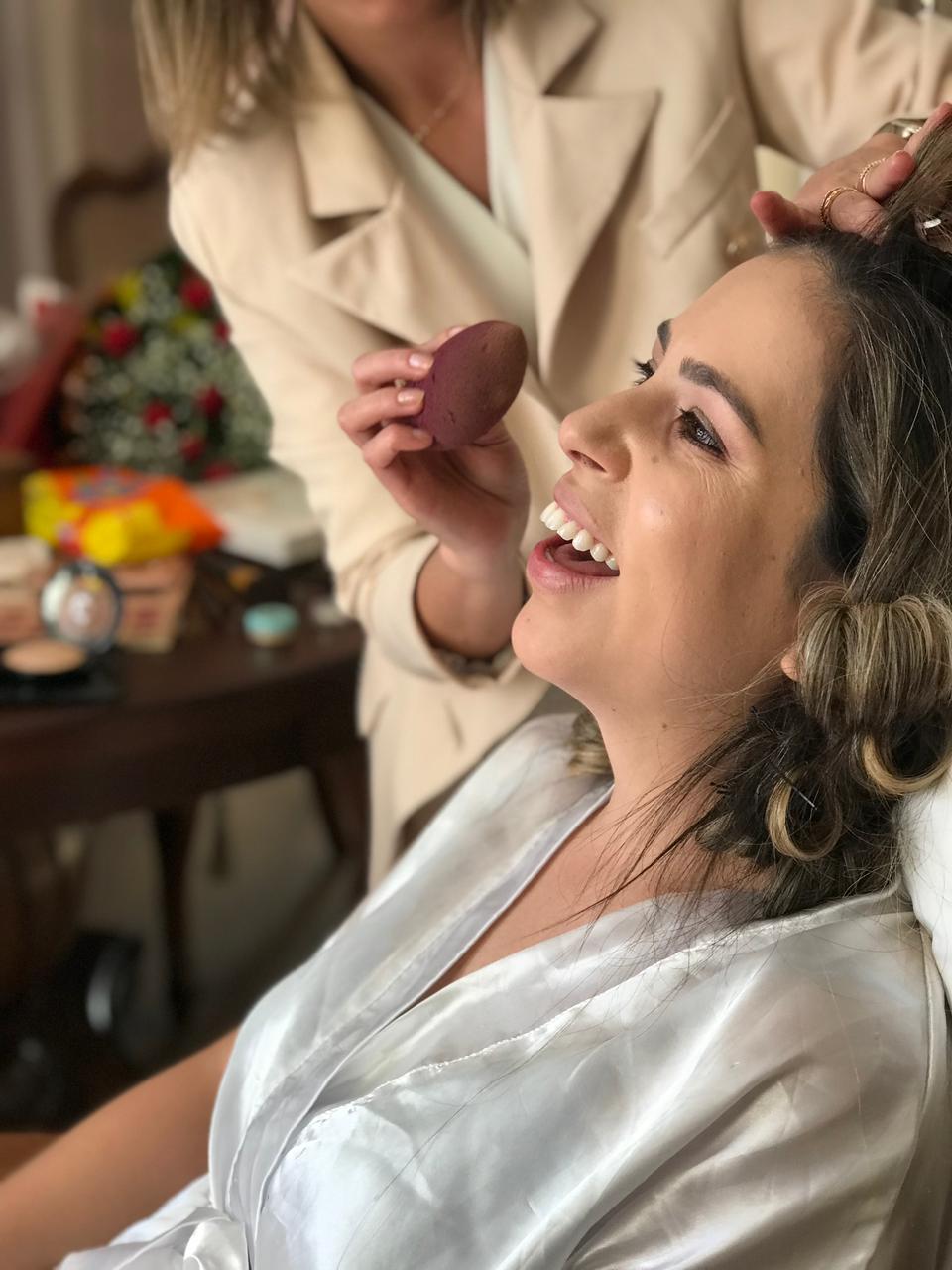 “Você foi uma das melhores escolhas que eu fiz no meu casamento! Foi essencial! Obrigada por ter me ajudado tanto, até quando não se tratava de cabelo e maquiagem! Você é uma pessoa que lumina! E vou recomendar para todas que forem casar, porque eu sou extremamente chata com os detalhes e você sempre atenciosa e paciente.”